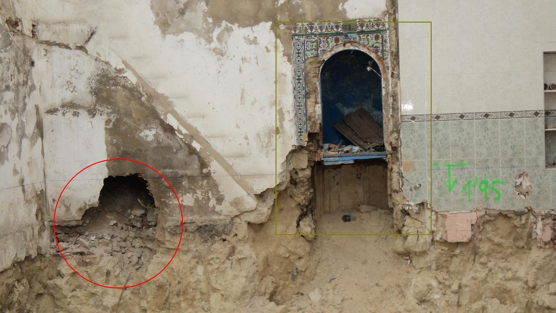 Melilla era una ciudad de pequeños cerros o colinas, poblados desde que se tiene noticia. Las abundantes cuevas naturales servían de refugio a los pobladores o como silos de almacenamiento. Melilla fue allanada en su mayor parte, por necesidades defensivas y como fruto de la expansión de la ciudad a principios del siglo XX. Conforme se iba allanando y construyendo, aparecían cuevas y vestigios históricos de los antiguos pobladores. No hay cerro de Melilla en el que no hayan parecido cuevas, silos, enterramientos u otro tipo de vestigios. Ahora se están demoliendo muchas casas de las primeras que se edificaron en «los años de la expansión» y al excavar para hacer cimentaciones más profundas, aparecen restos de antiguas cuevas, como la de esta casa en el Monte de La Libertad, que deja ver el resto de una cueva en su parte izquierda y en la central, en otra parte de esa misma hueco natural o artificial, parece que fue utilizada como una pequeña «cripta» de la casa y una alacena en la parte baja de la misma. Las ciudades se van desarrolando y asentando sobre anteriores poblamientos y muchas veces se tapan y otras afloran algunos retazos de ese pasado. Siempre se oye que en tal obra o en tal otra ha aparecido no se sabe qué cosa y que rara vez saltan a la luz. De esta al menos ya queda la noticia.
