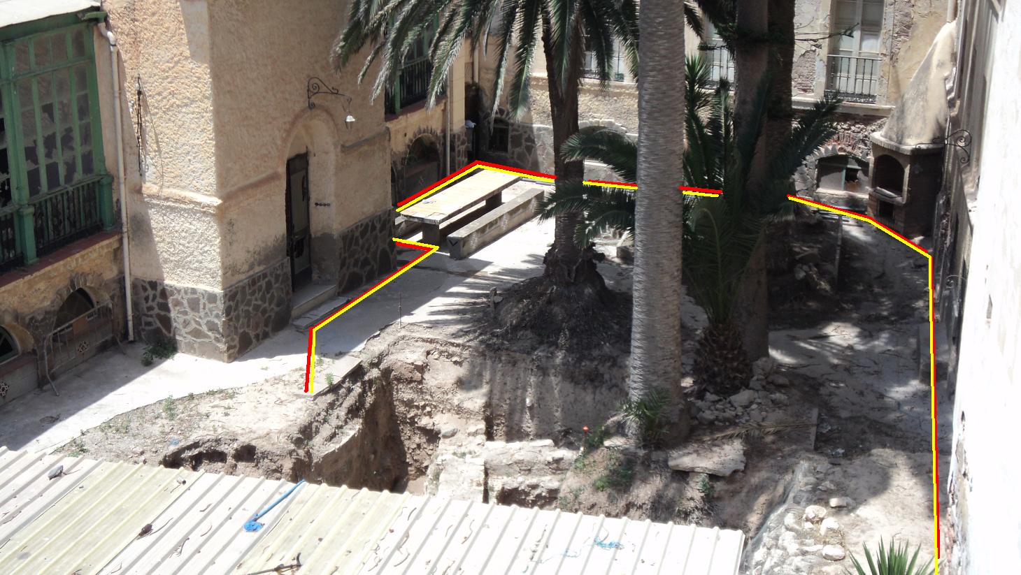 PD: El área del patio marcada con las líneas amarilla y roja, no será excavada.