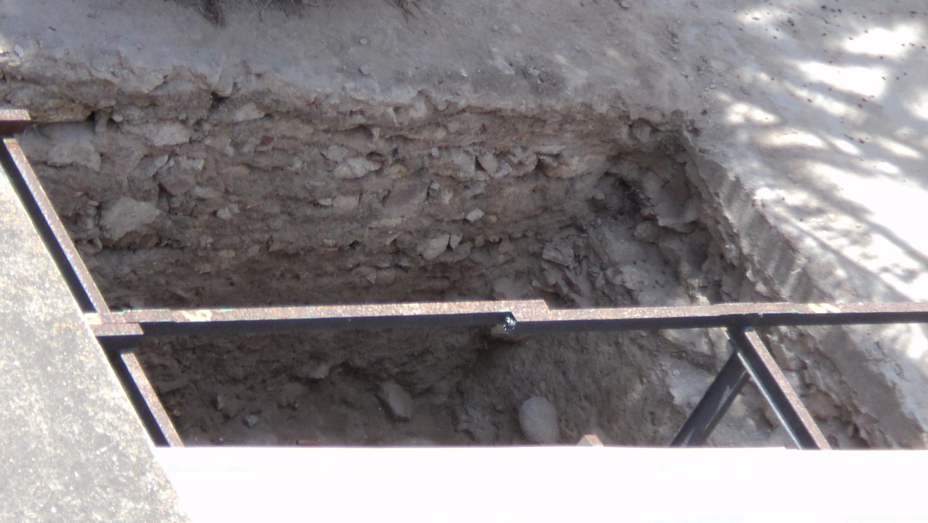 Habida cuenta de que no se permite la excavación hacia el sector Oeste del patio, y llegados ya a la roca madre, solo se ha permitido un leve avance en dirección Sur, hacia lo que sería la puerta de salida. Esta nueva zanja, de la que se ha excavado poco más de un metro , muestra la misma continuidad de la potente cimentación medieval, en dirección perpendicular, y restos de alineamientos de muros, en dirección transversal. También parece haberse encontrado un pequeño habitáculo o cueva, en el centro de la nueva área excavada. No podemos decir nada más. Dejaremos las fotos para la interpretación y conocimiento de los expertos. Yo he cumplido mi misión sobradamente. Ahora quien quiera, que dé las explicaciones debidas.