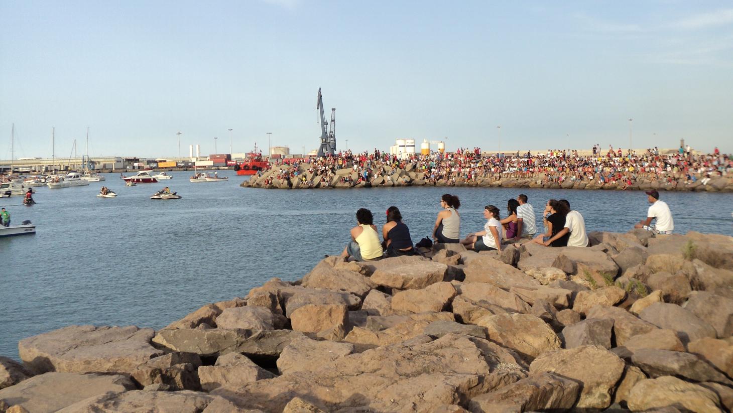 Los yates invadieron casi toda el área de saltos, cegando los posibles canales de evacuación en caso de accidente. Las advertencias fueron constantes por megafonía, invitando a los yates a colocarse a «barlovento». Aun así algunos hicieron caso omiso y apenas movieron su yate de sitio, dejando el espacio imprescindible, tanto para los saltos, como para la posible evacuación. Esto hizo que la prueba empezara retrasada con respecto al horario previsto. El Sol se puso y al final había un contraluz que impedía la visión clara en la parte final de la prueba, que coincidió con la llegada del barco de Almería a las 20h 30. Pese a todo, la linea de yates impidió, tanto a barlovento como a sotavento, ver la entrada de los saltadores en el agua.