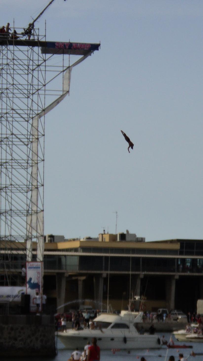 El skyjump fue un espectáculo insólito y vistoso que se celebró el pasado día 26, no muy bien organizado y con pocas zonas para verlo de manera adecuado. Al final no conseguí averiguar si se habían instalado esas «gradas especiales» que anunciaron colocar. Creo que no.