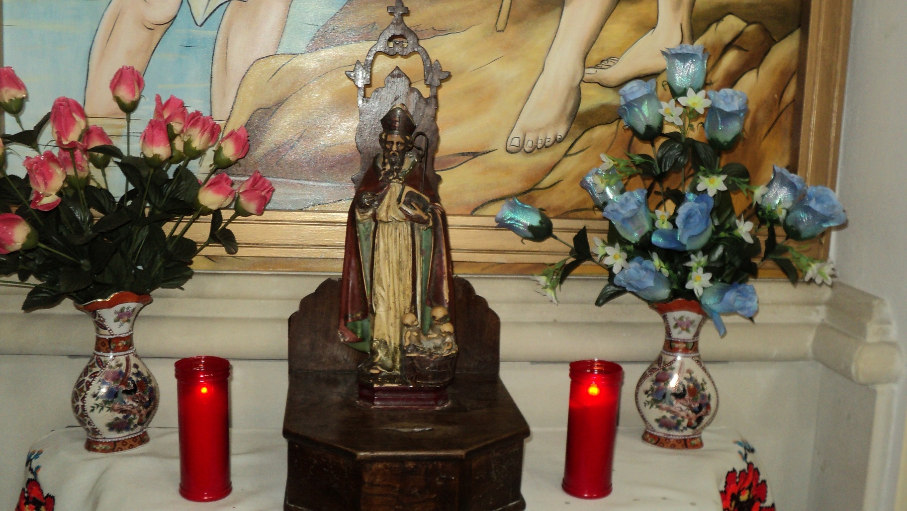 San Nicolás de Myra (Turquía) fue Obispo de la Iglesia católica allá por el siglo III d.C, hijo de un rico comerciante, del que heredó una gran fortuna que empezó a repartir entre los pobres de su área de influencia, incluso en vida de su padre. Tenía y tiene gran fama de milagrero y abarca gran cantidad de campos de acción, pero fundamentalmente es el santo de los marinos, pues en la zona oriental de la iglesia cristiana, la Virgen no tiene advocaciones. Es el equivalente oriental de la Virgen del Carmen. Otras de sus más famosas acciones fue librar de «la venta» a tres muchachas casaderas a las que su padre, comerciante empobrecido, quería vender. Enterado de esto el obispo Nicolás de Myra, durante tres lunes seguidos hizo caer una bolsa de monedas de monedas de oro por la chimenea de la casa de las jóvenes. De este hecho arranca las «visitas de los tres lunes», que se deben realizar en el mismo mes. Esta acción le hace ser invocado tanto por mujeres casaderas como por gentes en dificultades económicas.