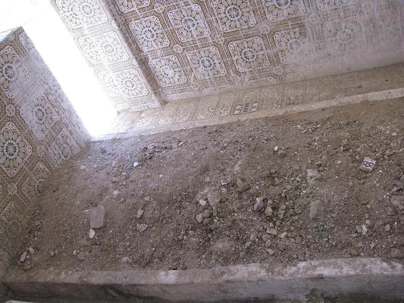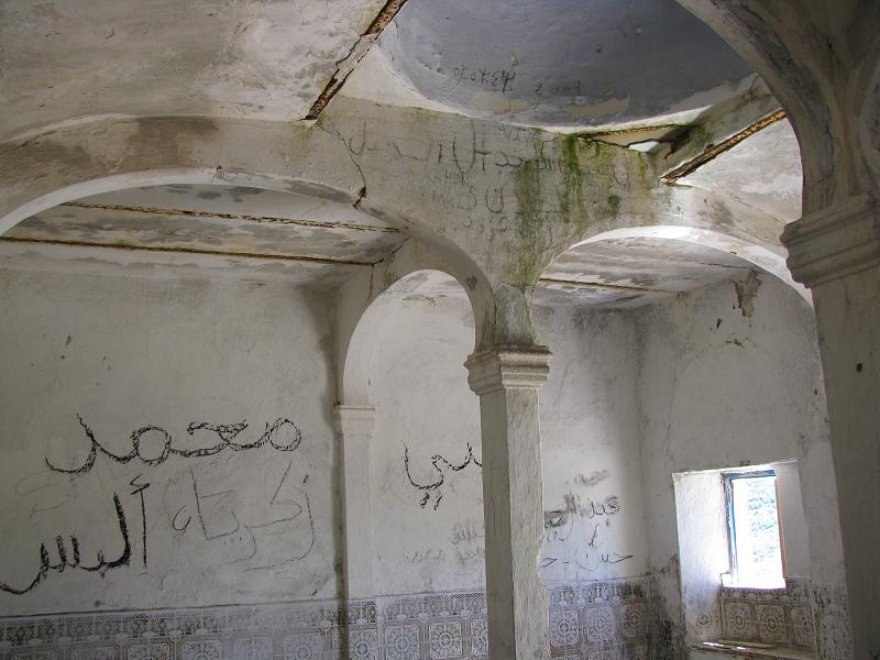 El morabo de Sidi Hamed el Hach (la reconstrucción española de 1920), se encuentra en un estado de absoluto abandono y parece que la tumba del peregrino ha sido removida o profanada. Hay pintadas en árabe, que sabrán leer los arabófonos y que espero que nos informen de su texto.