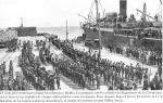 Este reciente y casi desconocido Cuerpo, el Tercio de Extranjeros,que envió a Melilla a sus dos primeras banderas, llegó a la ciudad en el transatlántico “Ciudad de Cádiz”, con la espectacularidad que le caracteriza. Del Tercio se destacaba en la noticia, que al frente del mismo se encontraba el Tte. Coronel Millán, al que también se le denomina como Millán Terreros o Sr. Millán. Las diferentes denominaciones se debe a que, pese a todo, no era especialmente conocido. A Franco ni se le menciona.