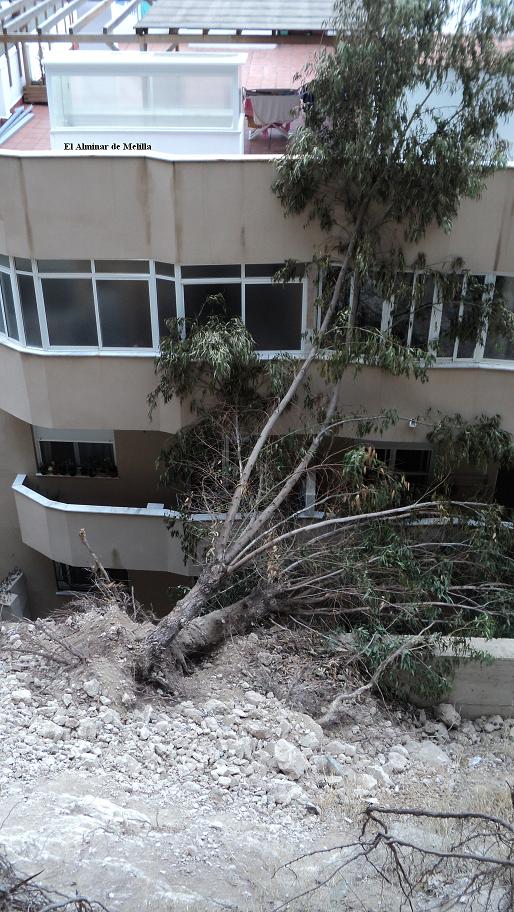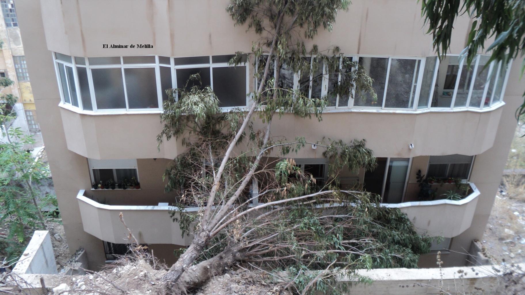 Las fotos que se han publicado muestran el árbol desde el interior de las casas y aunque son ya de por sí impresionantes, no queda tan explícita la peligrosidad y la situación de la zona, como con estas fotografías realizadas por El Alminar de Melilla.