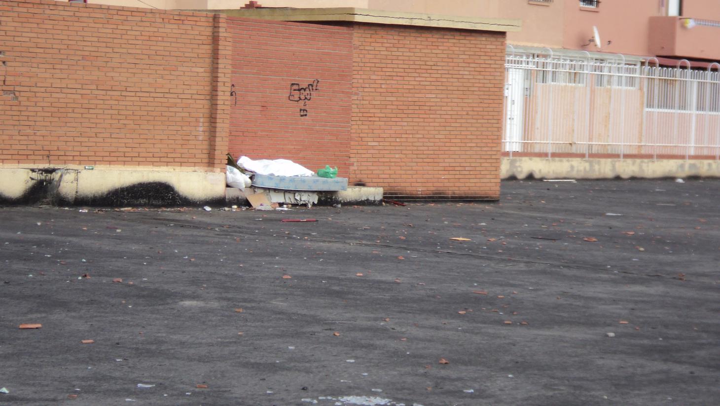 Lo que no entra en lógica alguna es que un espacio «homeless» se mantenga durante meses, por no decir años y que para mayor gravedad, la zona no solo no esté escondida, sino a la vista de todo el mundo y de modo diario. Esto está ocurriendo desde hace mucho tiempo en las inmediaciones, o en las lindes de un parque infantil, concretamente el del Bº de La Victoria, justo encima del Garaje Estrada. Esta zona es el techo del mencionado garaje. En la parte de atrás, hay una verja rota, por donde entran «malandros» de todo tipo, homeless, adolescentes, bebedores a tiempo completo, e incluso dueños de perros, que los llevan allí a jugar y a defecar. La situación es insólita y a la vista de todo el mundo, de los que juegan en el parque y de los vecinos de las inmediaciones, que para mayor ironía, se llama: «Calle de la salud».