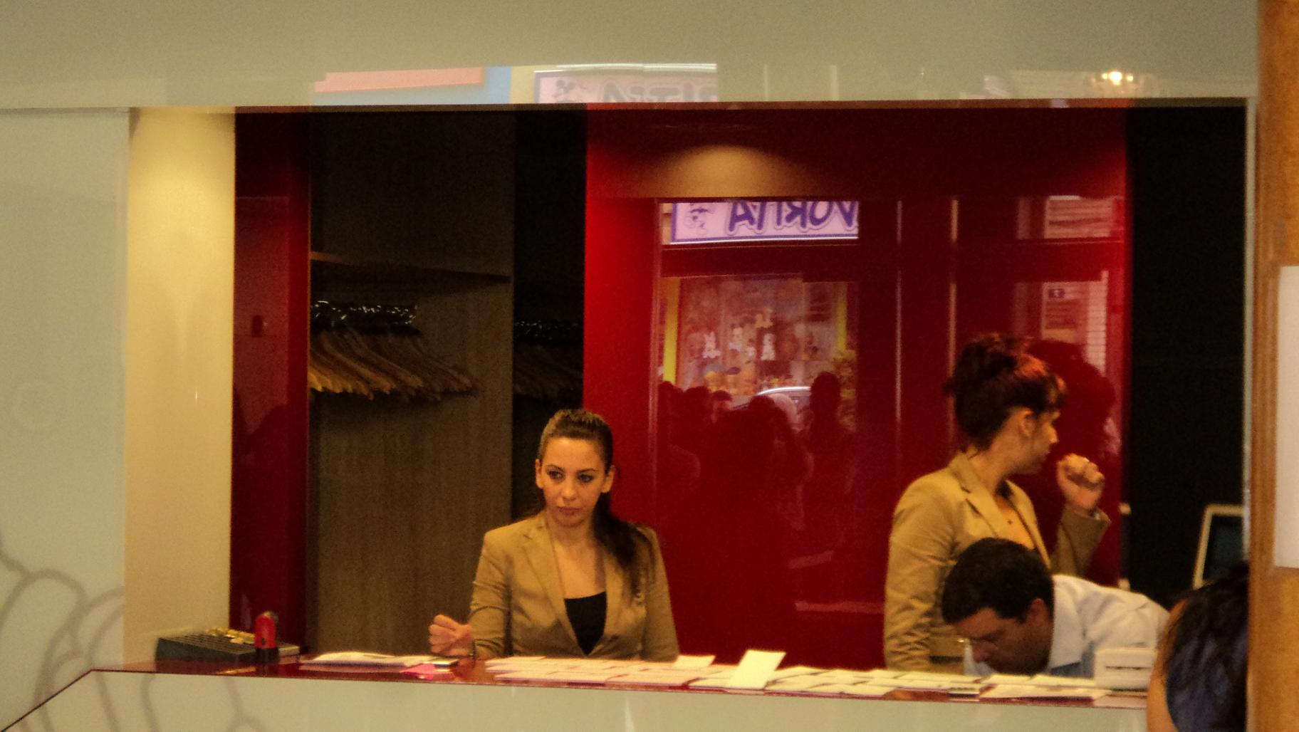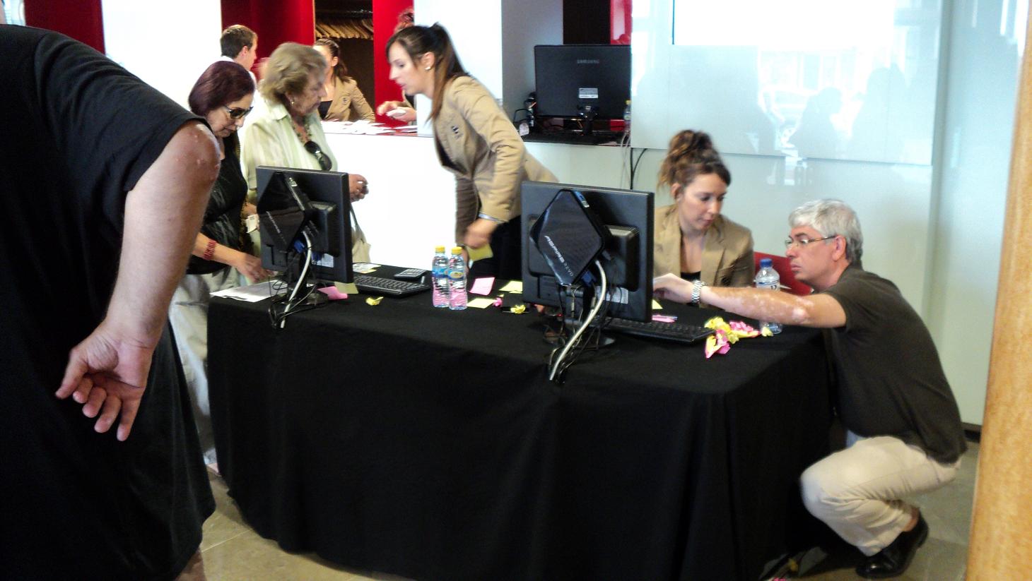 Otra cosa que no se ha entendido es porqué las mesas con los ordenadores (dos mesas, cuatro ordenadores), estaban separadas de la zona en donde estaban las entradas, en la zona central de recepción. Esto obligaba a seleccionar las entradas en las mesas, esperar a que la azafata encontrase las entradas, volviese con ellas y tuviese que realizar otro viaje para llevarse el dinero. Es el sistema más complicado y lento posible. Los visualizadores de ocupación del aforo, han funcionado a ratos y no siempre con toda la información actualizada.
