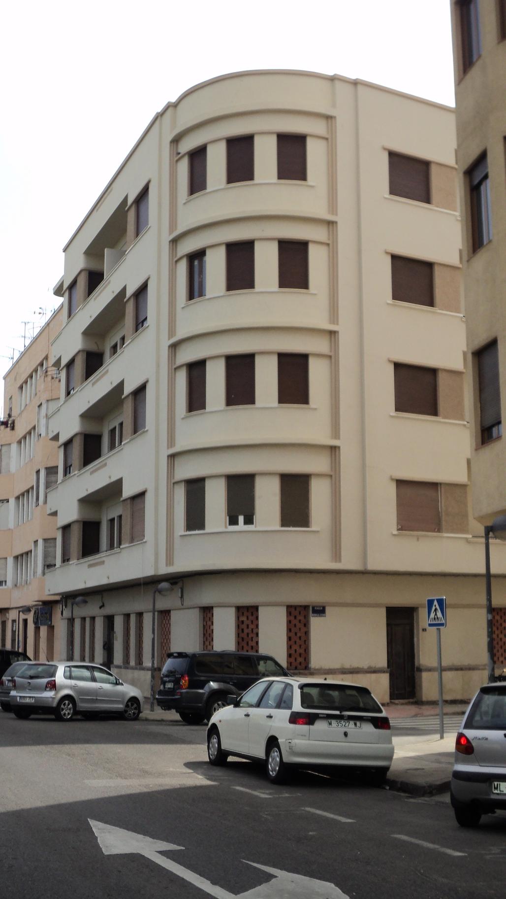 En Melilla, para su pequeño perímetro, pasan demasiadas cosas inexplicables, como lo ocurrido con este edificio en pleno centro de la ciudad. Es un edificio emblemático, muy visible, del arquitecto Francisco Hernánz Martínez*. Prácticamente toda la línea de la avenida de La Democracia es obra suya (ejecutada en la mitad de la década de 1930). Este arquitecto se caracterizaba por imprimir líneas aerodinámicas a sus edificios y todas sus esquinas son redondeadas, los que le da más impresión de ligereza los edificios. Hace no muchos dos años «derribaron» un edificio suyo en el Tesorillo. Fue expulsado de Melilla mediante expediente, para abrirle hueco a otro arquitecto al que debían abrir paso en la ciudad.
