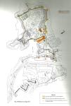 Nota: En la foto se aprecia la existencia de una cerca de caliza amarilla, del mismo color que la muralla de La Florentina, igual que otra que hay enterrada bajo la falsificación de La Plaza de Armas, igual que la que apareció en la batería de la Muralla Real (estos últimos fueron pasados por la piqueta). Esas similitudes hacen pensar que proceden del mismo periodo histórico, que son de la misma factura y traza, y nos situarían, casi con toda seguridad, en la Melilla medieval musulmana. En el plano se ven claramente dónde estaban las construcciones existentes a la llegada de los españoles. Casi todo lo que queda está en la zona del parque Lobera.
