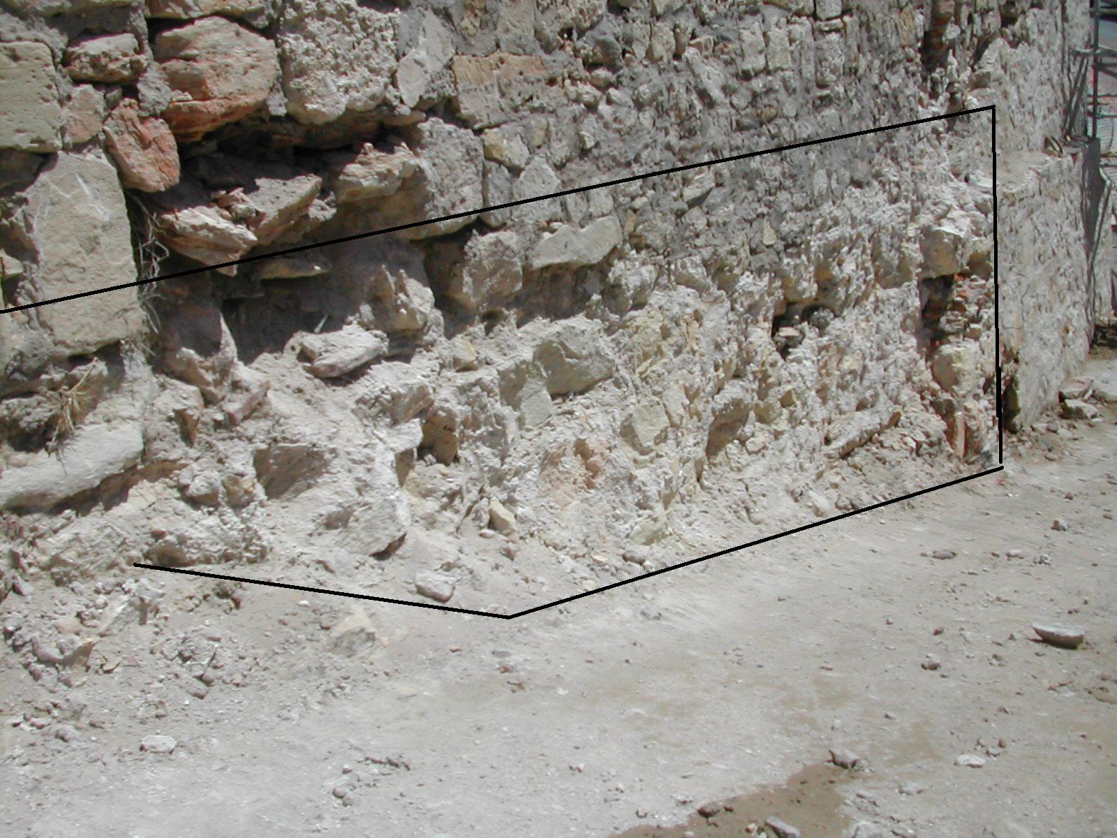 Tenemos localizados tres segmentos de la muralla de caliza amarilla (Florentina, parque Lobera y plaza de Armas), dos están enterrados y solo uno a la luz, el primero mencionado. Había otro segmento más, estaba en las laminadas escalinatas de acceso a la Batería Real, pero fue picado a conciencia y eliminado sin consideración y sin criterio científico alguno. Las fotos que realicé en diciembre de 2010, muestran claramente la diferente composición de la muralla, e incluso los restos de la argamasa original. Diferente composición significa diferente periodo de construcción. Esto prueba realmente que el baluarte y el caballero de La Concepción se construyeron sobre la antigua alcazaba árabe, e incluso ésta sobre algún resto de construcción anterior. Así que cuando se escribía: «se afirma sin pruebas que el baluarte de La Concepción se construyó sobre una edificación anterior de origen árabe…….», se estaba haciendo esa afirmación más acorde con los deseos de un origen hispano inmaculado, que con la evolución histórica de la fortificación de Melilla.