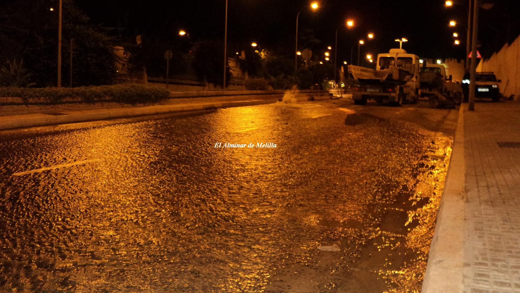 Una de estas tuberías ha reventado esta mañana y por la noche, todavía seguía saliendo el agua en abundancia. Hace apenas un mes reventó un colector, justo en la rotonda que da acceso a este tramo de la carretera de Alfonso XIII. La rotura se encuentra a la altura de la entrada Este del Parque Forestal. Por el tamaño de la rotura y la gravedad de la avería, es seguro que el tráfico esté cortado en este tramo hasta el final de la semana, por lo que habrá que buscar desvío alternativos a esta transitada ruta.