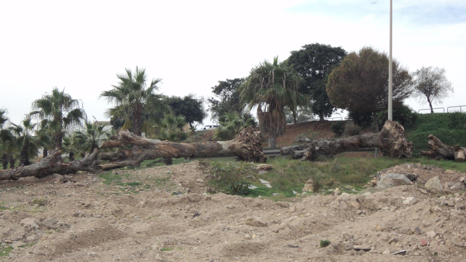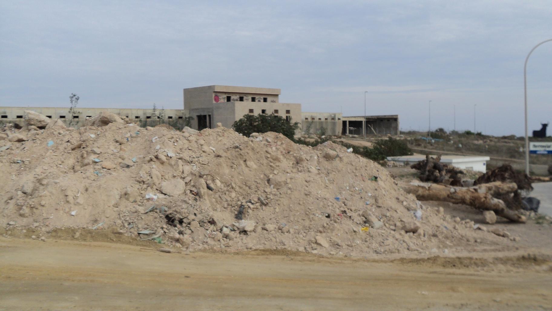 Hay demasiadas cosas extrañas en Melilla, como este cementerio de árboles, que en realidad están sirviendo como delimitación de una parcela de la que tampoco se sabe la finalidad. Creíamos que en Melilla teníamos una escombrera, ubicada junto al nuevo y denostado (por el Gobierno local), paseo marítimo de Horcas Coloradas, sin embargo, este lugar está  también lleno de escombros y de los áridos procedente del  vaciado del solar de Isla de Talleres. Quizá estén acumulando los áridos para el posterior relleno de la «ampliación del Puerto de Melilla», obra magna que no se nos va a olvidar por mucho que gobierne Mariano Rajoy. La acumulación de áridos en una zona no destinada a ese uso no está permitida por la normativa legal, o quizá se trate de un «nuevo negocio» y estos áridos estén destinados a ser vendidos en otras labores de relleno, tanto de Melilla como de otras zonas limítrofes, pero dentro de Marruecos. El comercio de áridos es muy interesante. en cualquier caso, se deberían dar explicaciones, tanto por parte de la Consejería de Fomento, de la que dependen las obras en Melilla, como de la Consejería de Medio Ambiente, de la que depende el uso del terreno y sobre todo, en zonas de ramblas y de posibles riadas, como son éstas. Además, queda preguntar el porqué se acumulan aquí estos áridos, existiendo ya otros lugares en los que se permite depositarlos, e incluso un vertedero de escombros.