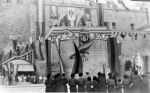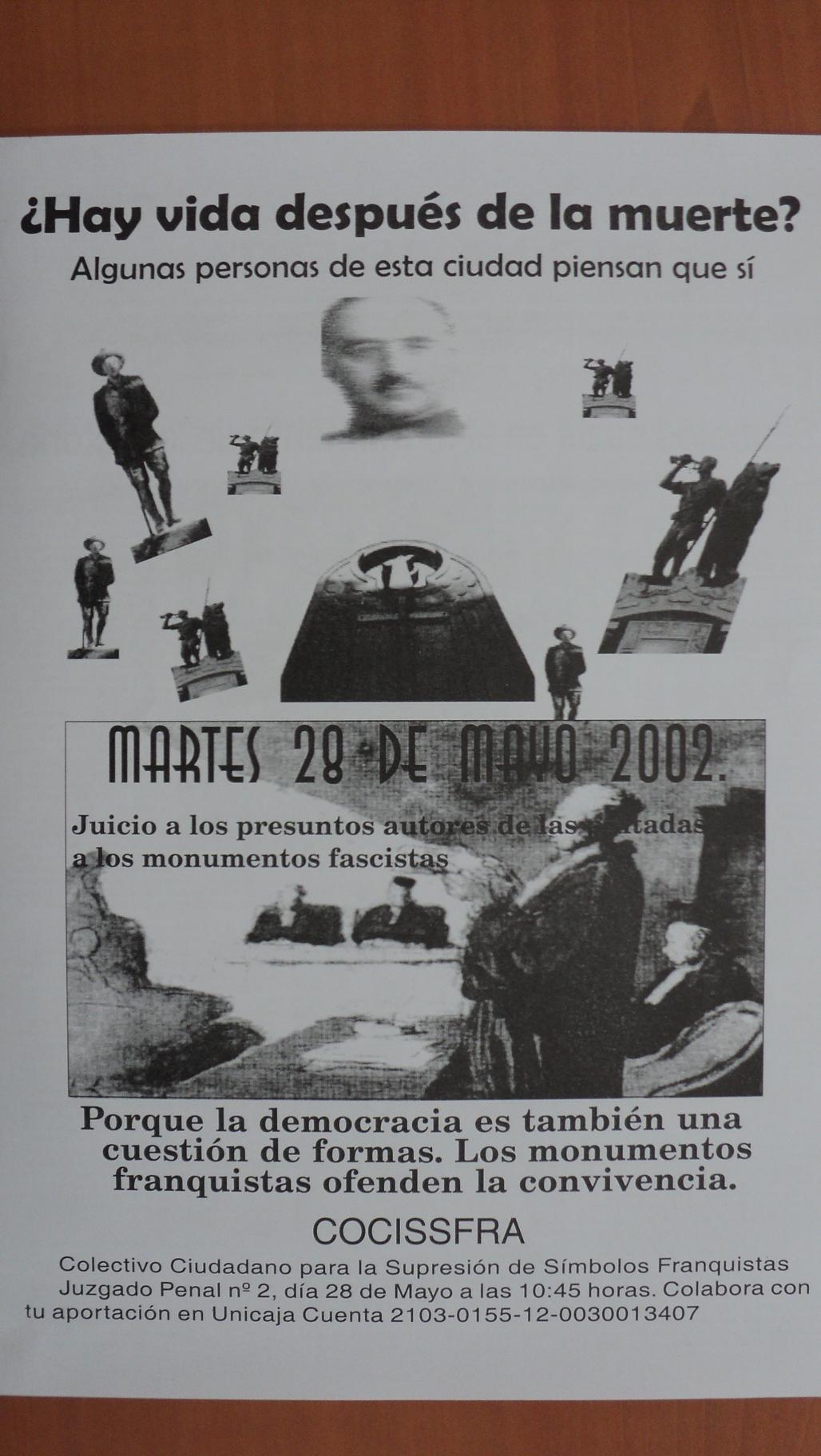En 2002, cuatro integrantes del Cocissfra, fuimos juzgados, bajo la acusación de haber pintado de malva, el monumento de la Plaza Héroes de España. Tres fuimos absueltos y solo uno fue condenado. Pagamos costas y multa. El caso es que dentro de la campaña de concienciación, editamos un folleto en el que dábamos forma a nuestra teoría de que la runa sigel, está encubierta bajo las alas del águila de San Juan. En la foto con la que ilustrábamos el texto, puede apreciarse que «la sigel», también puede dibujarse o representarse de modo recto, lo que la asemeja aún más, al diseño del monumento, ideado por el arquitecto Enrique Nieto, reconocido y prestigioso miembro de Falange.