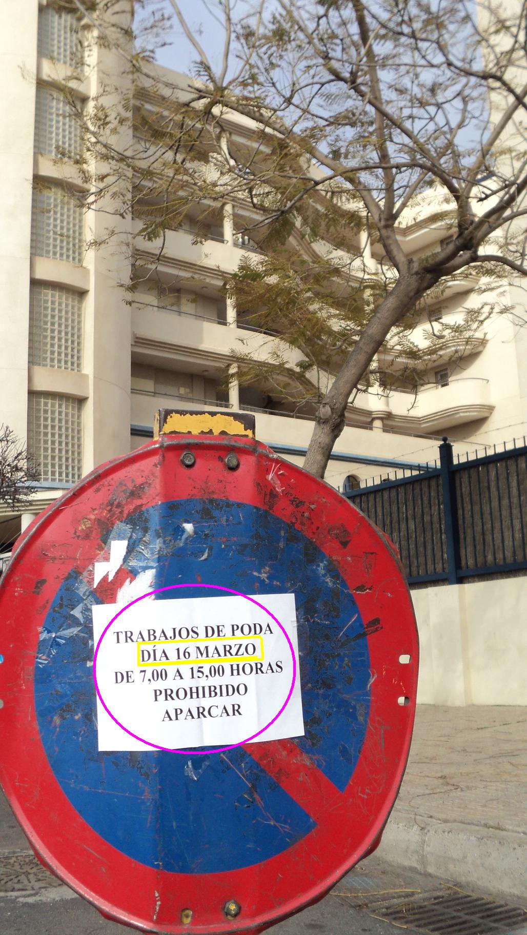 Hoy estaban otra vez las señales, pero esta vez advirtiendo de que los trabajos iban a realizarse durante el día 15 de marzo. Por si acaso, y porque no se debe tentar a la suerte dos veces, no he aparcado en las inmediaciones, no fuese a caerme la poda en mi bolsillo. No ha aparecido nadie tampoco. Ya tengo curiosidad por ver si mañana están, pero con fecha 16 de marzo. Quizá sea una «señal trampa» o se anuncien trabajos fantasmas. Mañana aparcaré muy lejos de allí, en el otro extremo de Melilla.