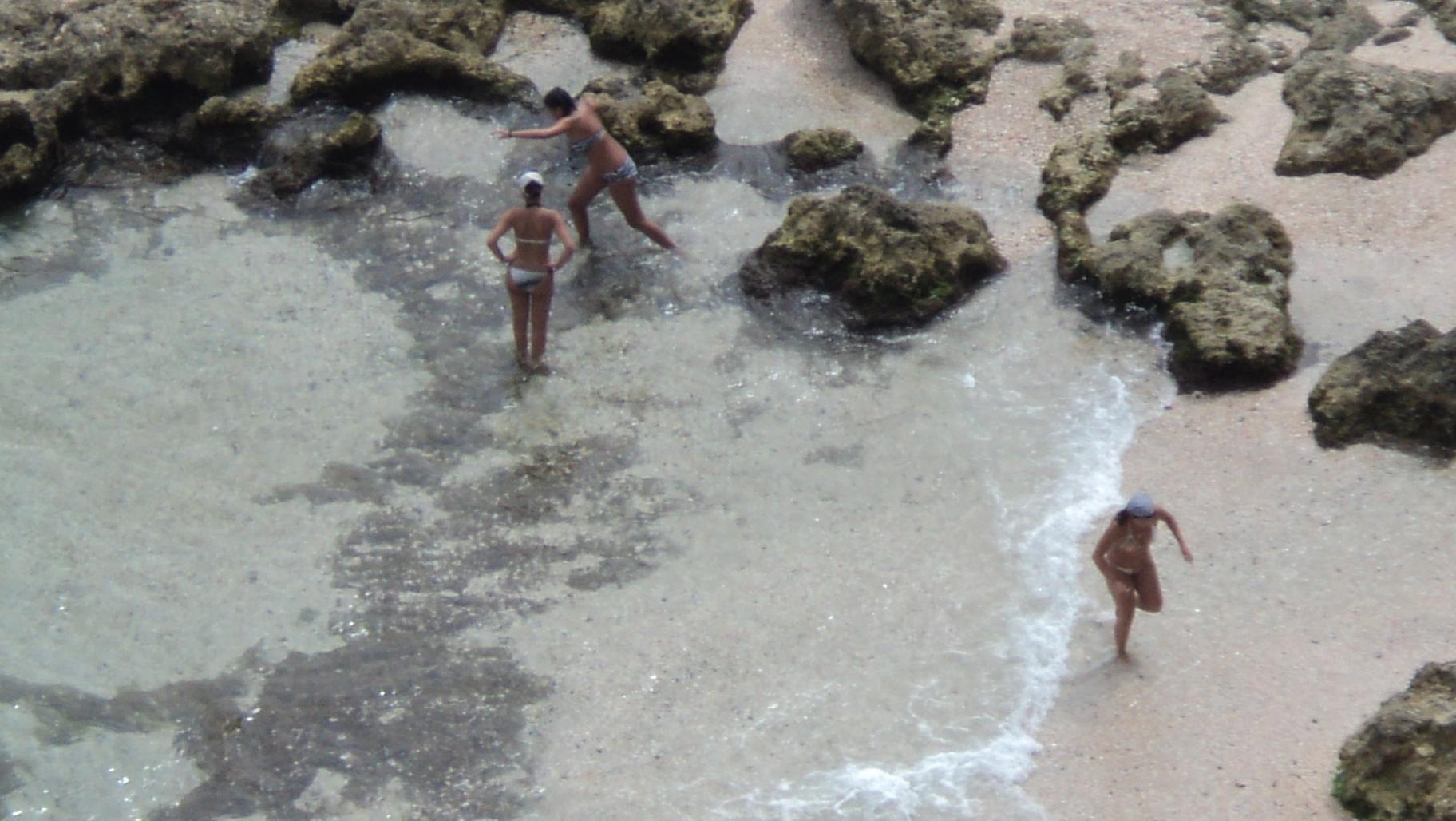 El segundo sentido tendría que ver con que es una zona natural de baños. Ayer día 9 de mayo hacía un día estupendo. La temporada de playas sigue sin estar inaugurada. No hay nada previsto ni preparado. La Consejería de Medio Ambiente tiene perdido el paso. Así pues, el pueblo llano decidió ocupar y utilizar la playa, que presentaba un perfecto estado pese a no tener mantenimiento de ningún tipo. Se accede a ella descendiendo por las escaleras de madera de la puerta de «las siete palabras» o «Alafía». Luego ya solo hay que nadar un poco y llegar hasta el arenal más grande. También hay otro sendero, el que bordea el peñon rocoso. El pueblo llano ya disfruta del Sol y de la playa, sin necesidad de que decreten que ya podemos bañarnos. Y esto sí es coste 0€. Una gestión atenta y cuidadosa, haría de esta zona el caríbe melillense, junto con la «cala de Trápana».