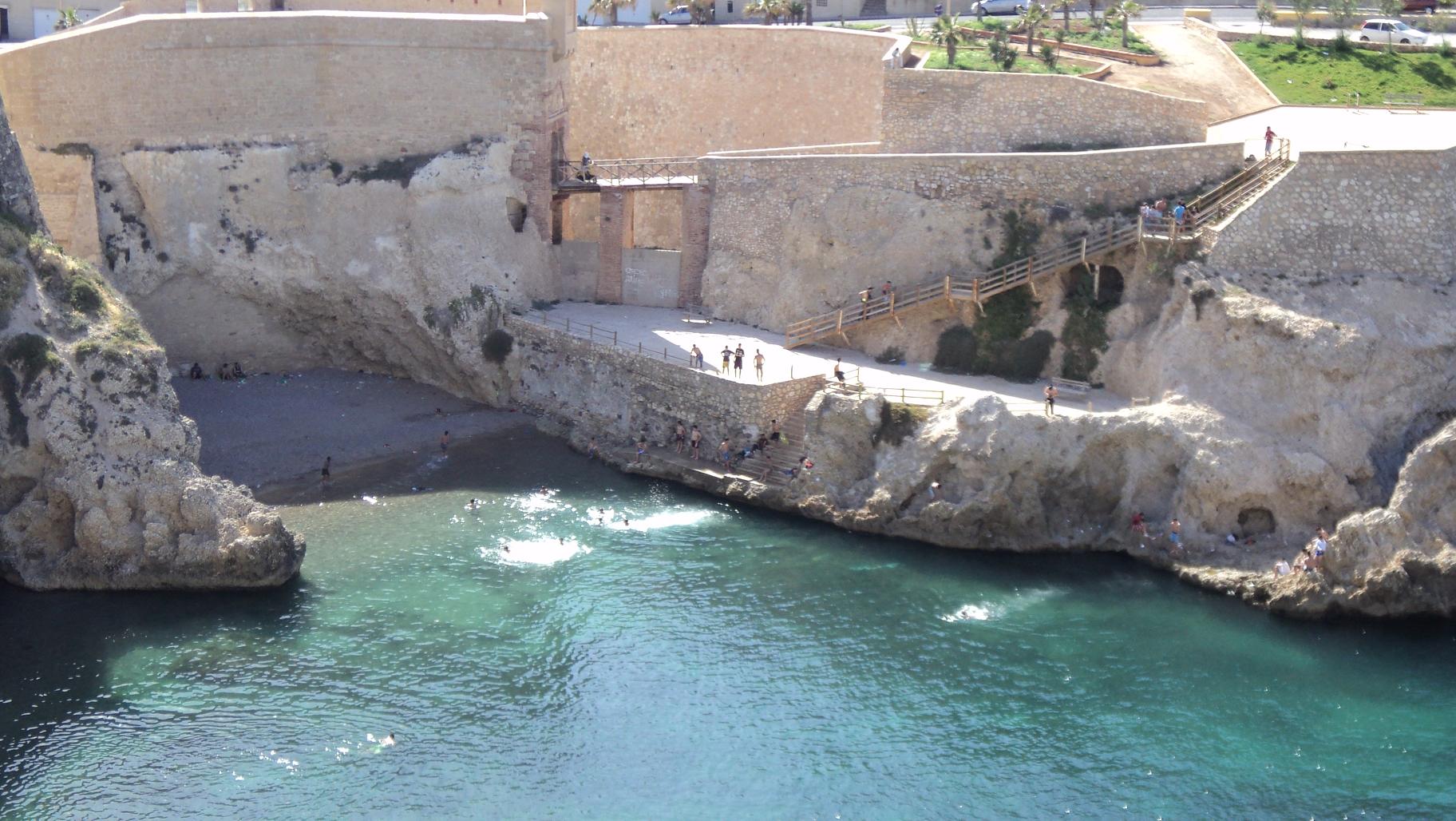 Es la playa del pueblo en los dos sentidos. El primero y más importante porque se trata de la ensenada de Los Galápagos, playa y embarcadero natural del peñon rocoso de Melilla. Hay zonas muy curiosas y toda esa ensenada está llena de cuevas y habitáculos naturales. El Pueblo es también una de las denominaciones clásicas de Melilla La Vieja.