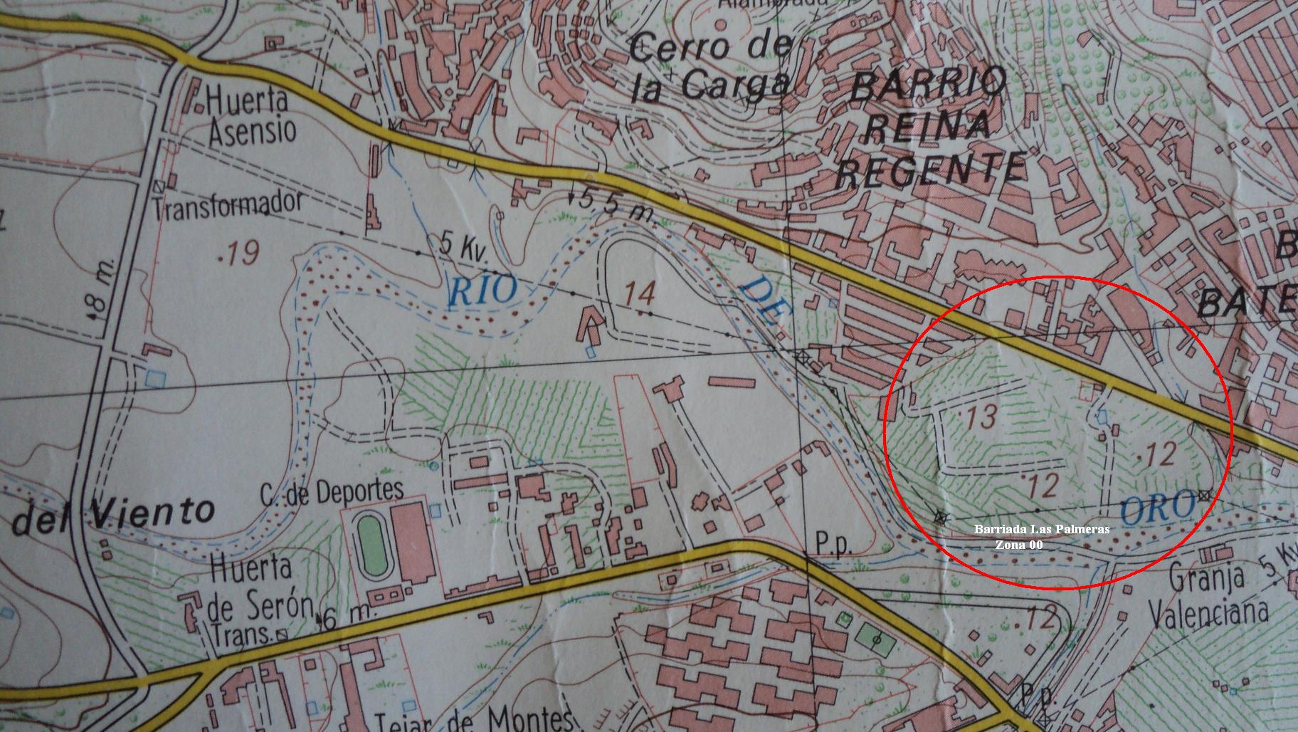 En la Huerta del Práctico se construyó la urbanización de Las Palmeras. Una de las parcelas es la carretera, S2, que divide la misma y sobre la otra, la S3 se construyó el bloque lindante con Carretera de Hidúm. El bloque más cercano al Río de Oro se asienta sobre la parcela S1.