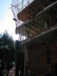 Un caso similar, pero en un edificio de menores dimensiones se ha producido en la calle del Gral. Polavieja, junto al Hipersol. Si el permiso para retirar el poste telefónico no llega pronto, el nuevo inquilino se encontrará con su casa abierta por el balcón y deberá completarla después. Mientras tanto, los albañiles sortean el problema como pueden.
