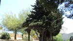 No sé que árbol puede ser el de la foto, parece un ciprés, o alguna de sus variedades. Es un árbol protegido. Se puede talar las ramas más largas pero no sacarlo de raíz ni cortarlo. Las zonas forestales que aporten mejora del espacio natural están protegidas. Parques y jardines dependientes de Medio ambiente no puede quitar esos árboles. Sería denunciable.