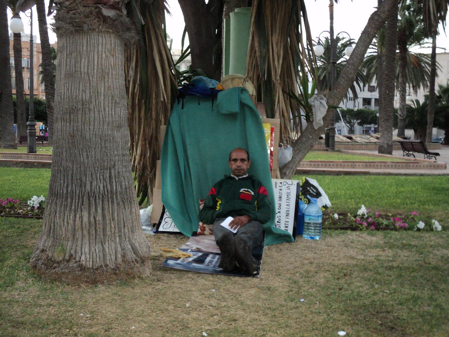 Badel Arruah y Abdulah Ben Rabeh son dos ciudadanos tunecinos que están acampados en la Plaza de España. Llevan más de un año en Melilla y no ven solución a su problema. Obtener la condición de refugiado político es muy difícil y también es una trampa legal, pues para ello hay que demostrar que el dictador te persigue de modo específico, lo que es casi imposible. Toda inmigración es económica en el fondo. Los españoles que se exiliaron de España a partir de 1940, eran en el fondo emigrantes políticos, aunque pasaron como económicos, pues la dictadura de Franco había convertido el solar hispano en irrespirable. Se huía para buscarse una vida mejor, pero también se huía, quien podía, de la dictadura.