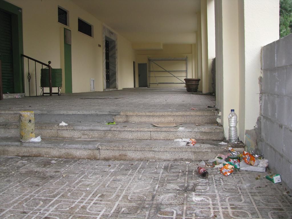Tras dos semanas de paralización de obras, y casi en la víspera del juicio, señalada para el día 7 de noviembre, tanto el Viceconsejero de Turismo como la comunidad de vecinos. Una puerta acristalada, que pagará el propietario del local, ha puesto fin a una incomprensible maniobra. Una de las fotografías, ilustra claramente en qué se ha convertido el soportal, y la necesidad del cerramiento.