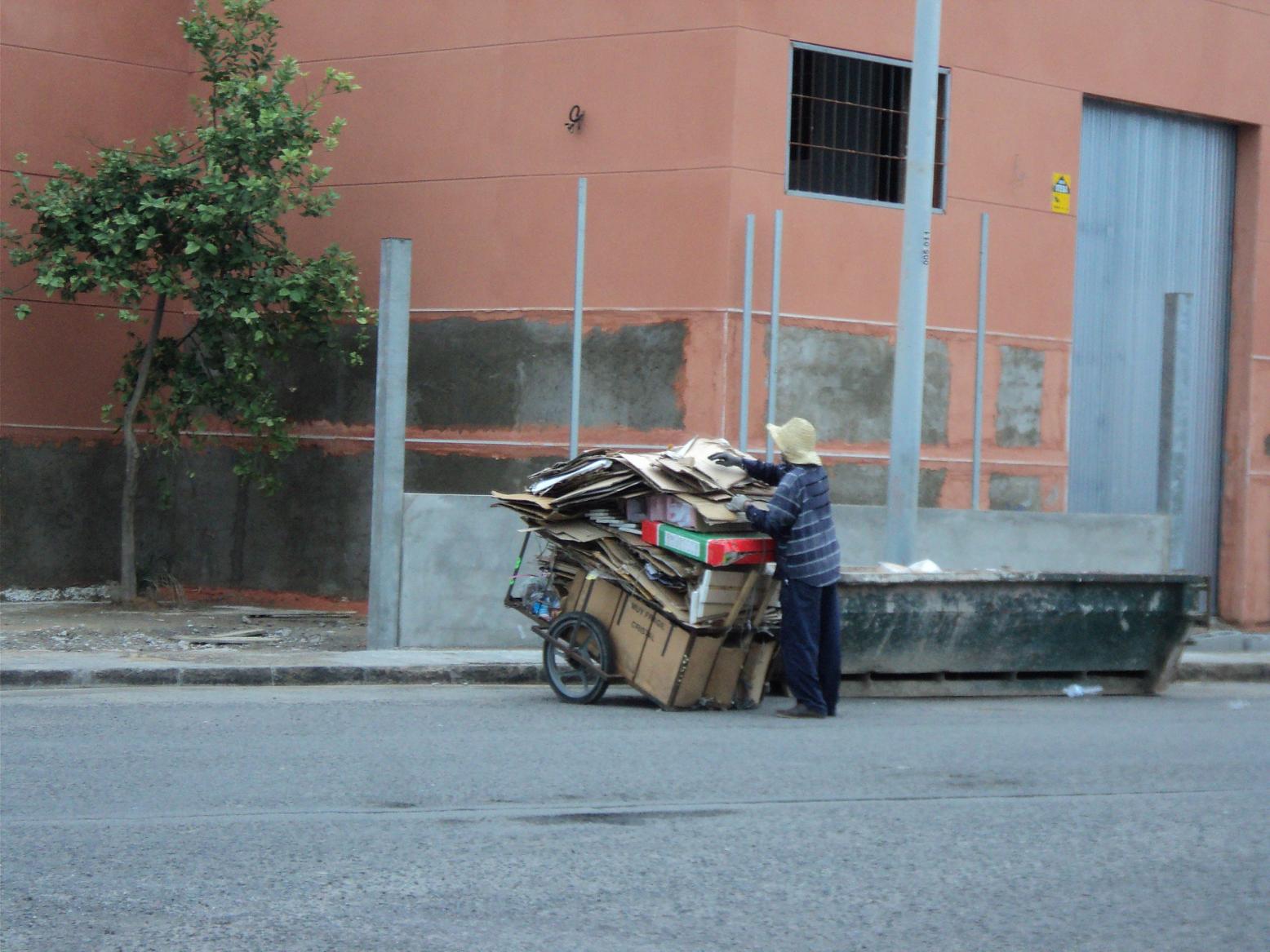 La basura es el «reino de los pobres», que ya bastante desgracia tienen con tener el detrito y el residuo, como único lecho económico, de donde obtener entre uno y cinco euros diarios para la subsistencia. Un ejército de bicicletas y ciclomotores entra a nuestra ciudad todos los días, para buscar cualquier objeto metálico, malla de hierro, electrodomésticos de desecho, vigas de derribo, con la fundición de Taouima como destino final. Se puede ver a personas en el límite de su resistencia física, llevándose objetos incomprensibles y de gran peso, que deberán transportar a lo largo de todo el día, durante varios kilómetros, para obtener unos pocos euros como sustento.