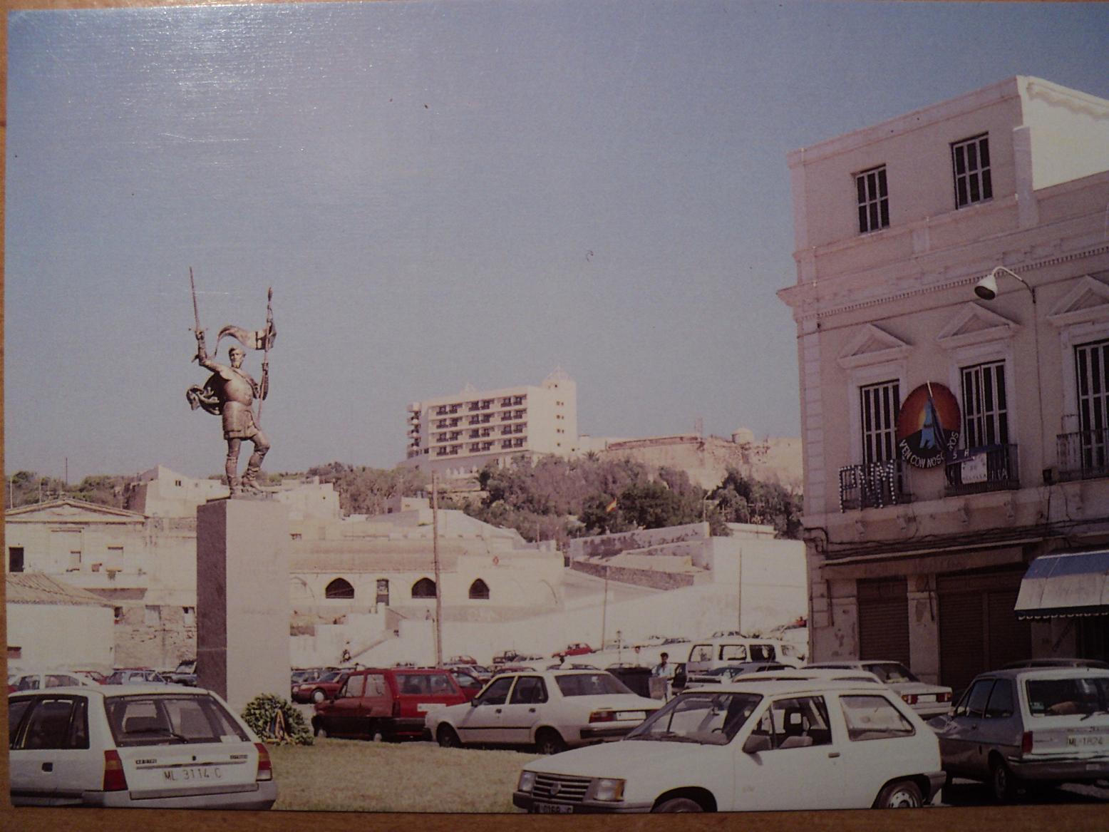 En toda la bibliografía disponible, no existe dato alguno sobre cuando fue erigida esta estatua, ni bajo qué regidor municipal, ni hay noticia de su autoría. El más amplio libro, el callejero de la Asociación de Estudios Melillenses, no se proporciona dato alguno. Se supone que fue instalada en su primitivo emplazamiento, detrás del Casino Militar, entre la década de 1960 y 1970, cuando se cosntruyó el mito de la fundación española de la ciudad de Melilla. Hasta esa fecha, nadie se había tomado la molestia de homenajear al «supuesto conquistador» de nuestra ciudad. El único dato claro, es que en 1997, el entonces alcalde Ignacio Velázquez, con ocasión del V Centenario, decidió trasladar la estatua a su ubicación actual, en Melilla La Vieja, y en la plaza que lleva su nombre.
