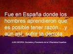 El siguiente paso fue buscar los discursos parlamentarios del que fuera Presidente de La República española, y descubrir la intensidad de una oratoria sublime. Su discurso titulado: «España ha dejado de ser católica», es una de las piezas más perfectas, respetuosas y tolerantes, que haya producido nunca el laicismo de la sociedad civil. No es que no fuera entendido este magistral discurso, es que fue absolutamente manipulado y retorcido para hacerlo pasar por lo contrario de lo que realmente era. Es precisamente porque lo entendieron perfectamente, por lo que la derecha y La Iglesia juntaron sus fuerzas, para tumbar de modo definitivo el proyecto republicano español, uno de los modelos sociales más avanzados de toda Europa, la de antes y la de ahora.
