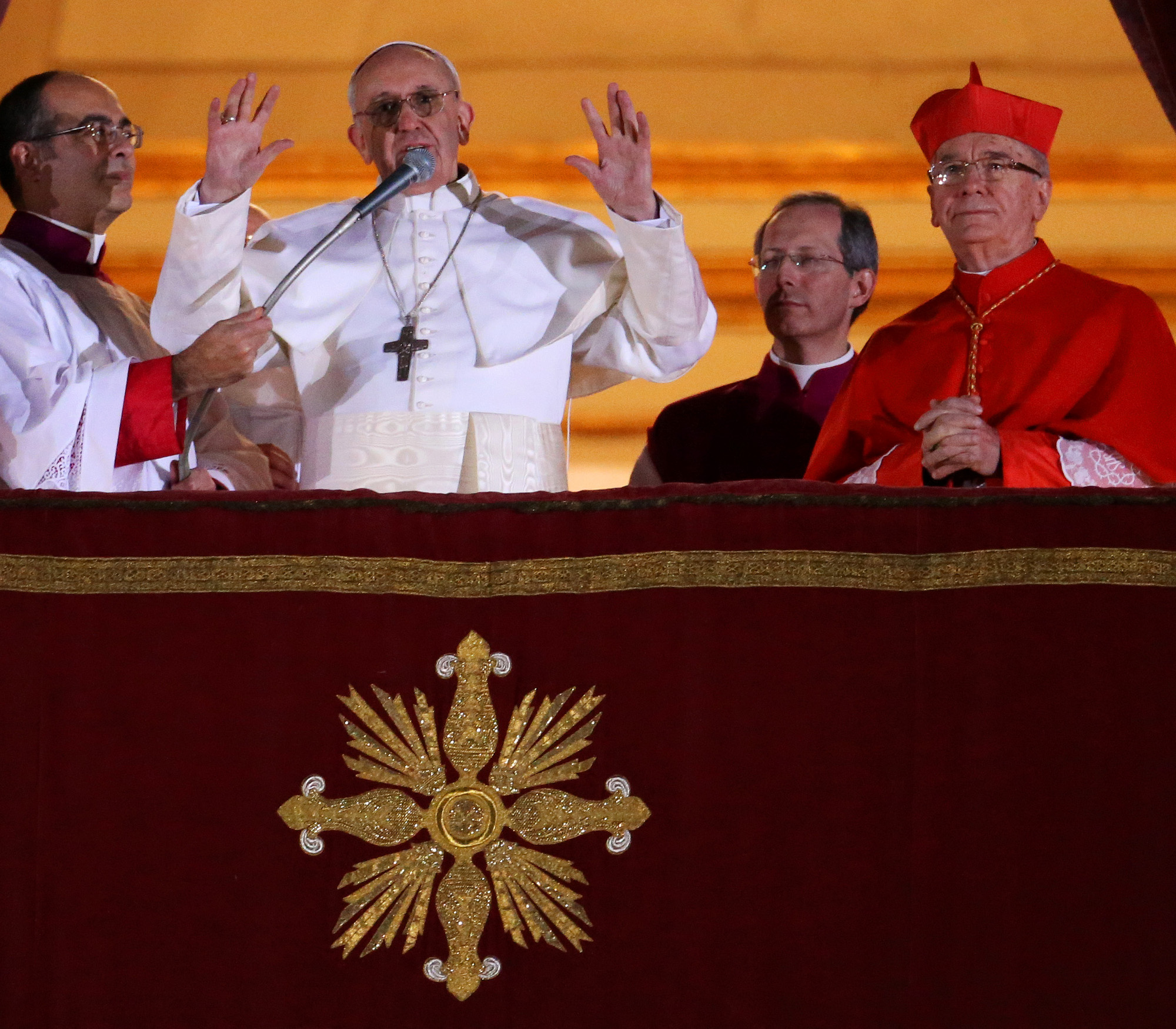 VATICAN CITY, VATICAN – MARCH 13: Newly elected Pope Francis I appears on the central balcony of St Peter’s Basilica on March 13, 2013 in Vatican City, Vatican. Argentinian Cardinal Jorge Mario Bergoglio was elected as the 266th Pontiff and will lead the world’s 1.2 billion Catholics. (Photo by Peter Macdiarmid/Getty Images)