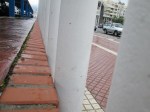 Siempre existe algo más y es que el borde de ladrillo que remata la superficie de aparcamiento, está ya resquebrajada. Todo la fila de ladrillos está ya desprendida del suelo y sostenida únicamente por la barra metálicas limitadoras del aparcamiento, aunque su función era únicamente la ornamental.