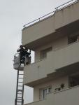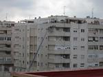El recubrimiento de la estructura del edificio presenta ya grietas en toda la fachada que da a la carretera de Alfonso XIII. La actuación de los bomberos ha sido espectacular, con su escalera más larga, la que llega casi hasta el cielo. Todos los días sucede algo nuevo e imprevisto. La ciudad se desmorona ante nuestro ojos. Debajo se encuentra la consejería de Consumo y Sanidad  de Melilla.