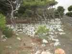 Esta floración silvestre está situada en los llamados «Pinos militares», junto a las baterías de defensa costera, y a ambos lados de la carretera. La más llamativa y amplia es ésta, situada en el lado de libre circulación del pequeño bosque melillense. Aquí hay poca actividad humana, por lo que el suelo no está apelmazado y todavía tiene floraciones naturales y vegetación silvestre. También puede crecer sobre la arena de la playa, de ahí el nombre de lirio de duna. La naturaleza siempre se abre paso, pese a la actividad humana. En la ciudad en donde reina el imperio del cemento y del maceterismo desaforado, siempre es gratificante encontrarse con imágenes así.