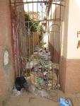 Esta es la ciudad que nadie ve, salvo los que viven en la zona o los que tienen que pasar por allí. Esta es la ciudad real, no la de la propaganda. Este es el acceso a la calle Infantería y a las viviendas de San Francisco de Asís. A solo unos metros se encuentra la mezquita central. Antaño hubo aquí un cafetín, y posteriormente fue sede de la asociación islámica Badr. Aquí hay una gasolinera y decenas de tiendas, muchas de ellas de alimentación. El callejón al que da acceso la cancela es el «patio de luces» de las viviendas, y el otro lado es el resto de la ladera del antiguo cerro de Santiago, que llegaba hasta este lugar, antes de que existiera nada. La suciedad puede llevar ahí meses o tal vez años. La cancela está abierta y el callejón puede ser utilizado para cualquier cosa.