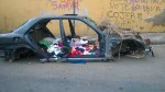 El arroyo de Farhana y el Río de Oro juntan sus cauces en la llamada avenida de Barcelona. Esto es una ladera del monte de Reina Regente y al abrirse paso entre las nubes, el Sol nos sorprendió detrás del alminar de la mezquita del califa Abu Bakr as-Siddiq, primer sucesor del profeta Mahoma y primero de los califas del Islam. Nadie viene por aquí. Esto es la Melilla oculta, la que está más allá de esa frontera no visible que divide los dos realidades principales de la ciudad. Esto es el Distrito V. Sin embargo, la vida se abre paso de cualquier forma y en cualquier lugar, aunque sea una vida sin opciones de futuro.