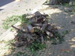 Sostenerla y no enmedarla, es la actitud de los empecinados. Esto es lo que está ocurriendo en las obras de la falsa peatonalización del barrio del Real. Esta vez lo están haciendo rápido, para dar menos oportunidades a los paparazzis aficionados. Las ramas ya convertidas en leña eran amontonadas y quitadas de la vista con celeridad. Después de una rápida pasada se perderá el recuerdo del estado anterior. Esto es destrozar los árboles. No hay más que decir. Los hechos están a la vista de todos/as.