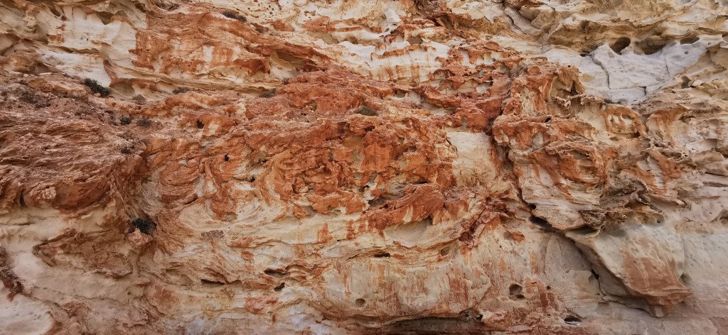 La erosión de las enormes paredes de caliza y areniscas blancas y ocres durante millones de años, y que forman los acantilados de Horcas Coloradas, famosos por otras muchas cosas, se acumulan en franjas de arena blanca y fina, que le dan al agua un especial color esmeralda, nombre con el que ha sido bautizada la neo playa, aunque en los planos de cartografía militar solo figure el nombre que da título a este artículo.