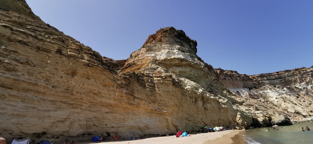 Situada en la zona más extrema del nuevo paseo marítimo, bajo el acantilado calcáreo de Horcas, presenta una enorme fractura en su continuidad, con desplome completa hasta el suelo, producto de un gran movimientos sísmico, no sabemos si anterior o posterior a los últimos 500 años. El enorme terremoto de Lisboa en 1775, el de Baza en 1531, o el de Almería de 1522, muy bien pudieron haber causado este desplome, con efectos invisibles desde la Ciudad Vieja. Es una línea de playa antiquísima, que no ha necesitado de aportaciones artificiales para mantener sus propios depósitos de arena.