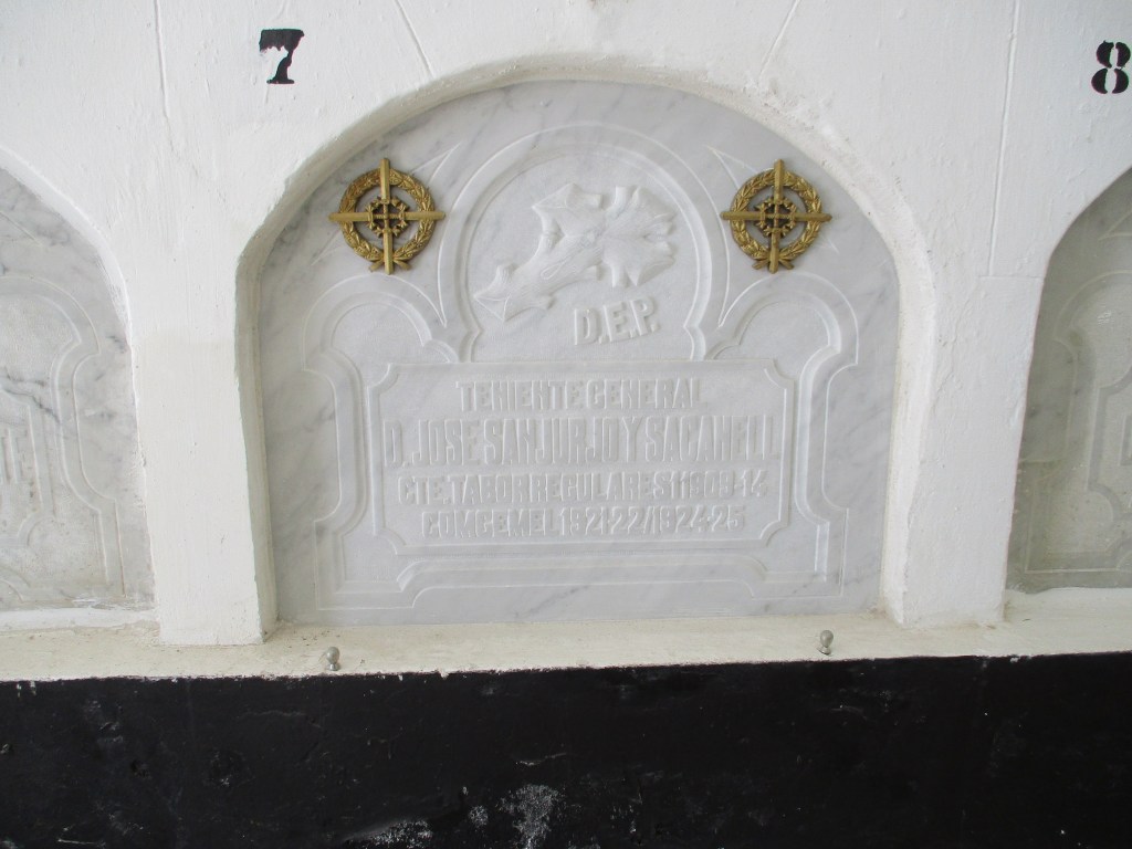 Tenemos las reliquias más importantes del Alzamiento de julio, solo por detrás de Mingorrubio, que alberga ya las de Francisco Franco. El que viajaba desde Portugal a España para hacerse cargo de la sublevación militar contra La República, era Sanjurjo, el único militar bilaureado junto a Varela, el único dos veces golpista y también enterrado dos veces, una en Pamplona y la definitiva en Melilla.