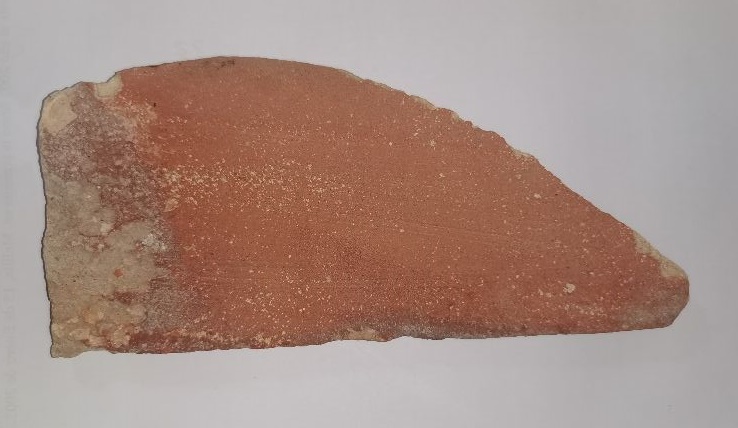 En una muralla en proceso de desmoronamiento, apareció un hermoso fragmento de teja de color rojo. En las murallas de Melilla la Vieja se distinguen dos tipos de ladrillos, lo rojos (mayoritarios) y los amarillos. Recogido el fragmento desprendido, y en una observación más atenta, pudimos verificar la presencia de dos magníficas tejas, similares a las del Museo de Melilla, utilizadas para macizar el paño de la muralla, en uno de los que es probablemente uno de los más antiguos. Han pasado 6 meses desde el hallazgo, y por fortuna, las dos tejas siguen en su lugar original, no así las del museo, que no aparecen.