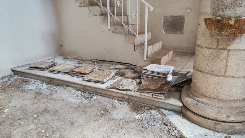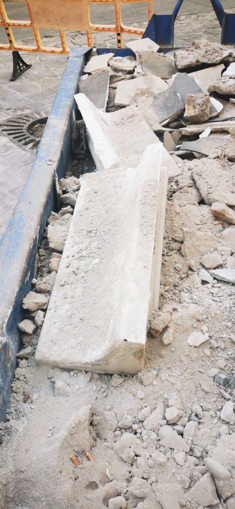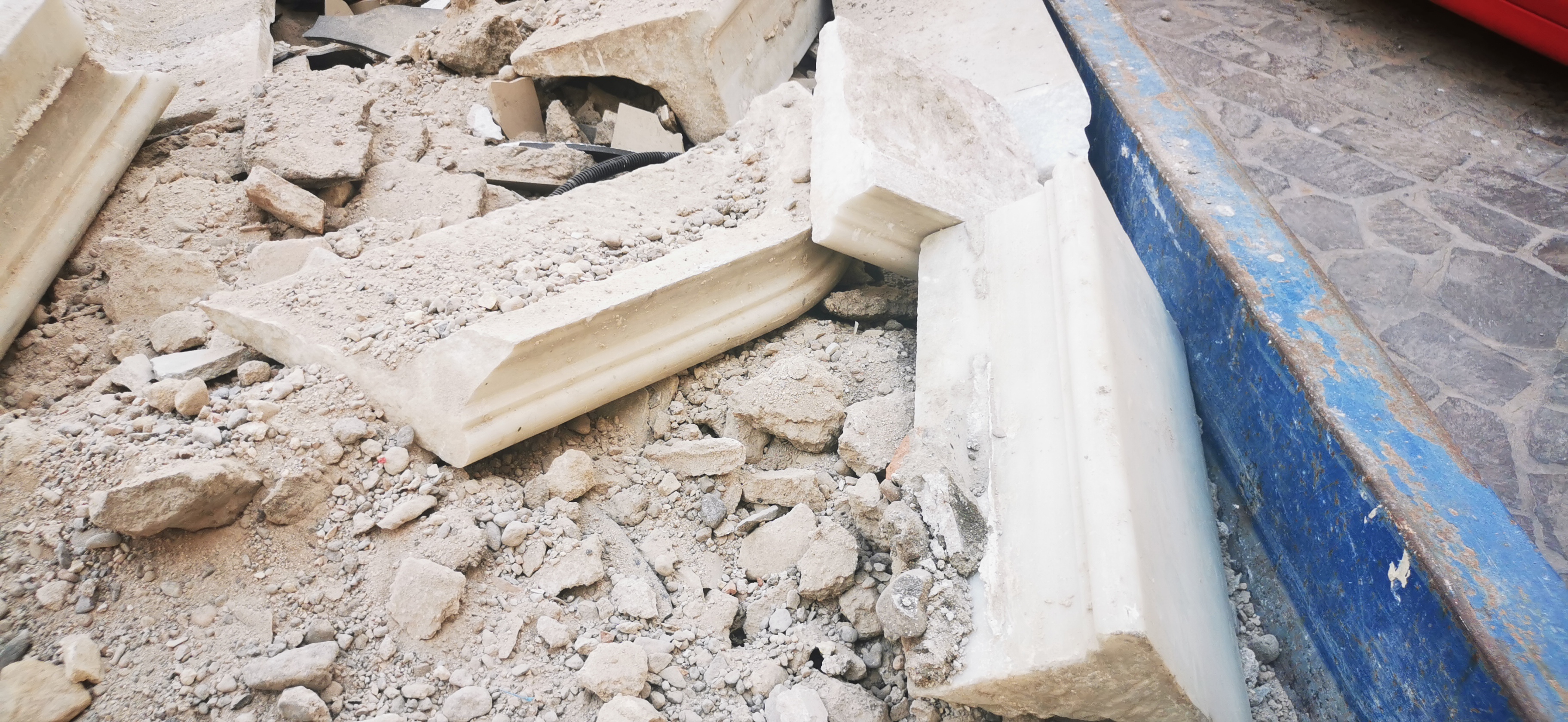 La aparición de los escalones de mármol, labrados a mano y datados en el siglo XVII, en el contenedor de escombros perfectamente cortados, hace pensar, porque no hay información, que se va con prisas. Hay que despejar todo lo antes posible y encontrar el acceso a las criptas, si existe todavía.