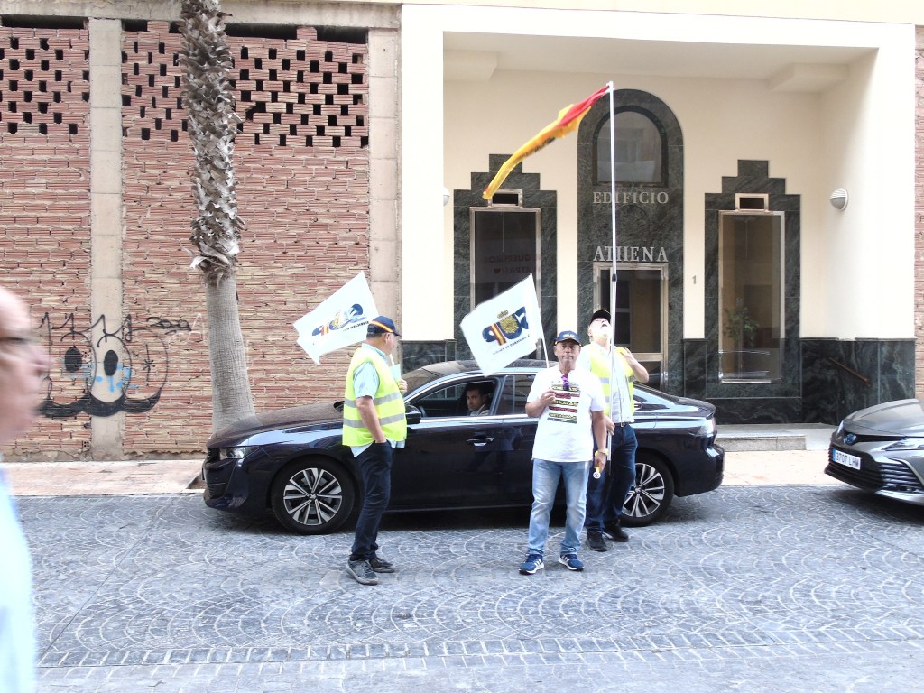A su llegada al acto electoral y comparecencia pública, le esperaban algunos miembros del Sindicato Unificado de Policía, con algunas reivindicaciones pendientes.