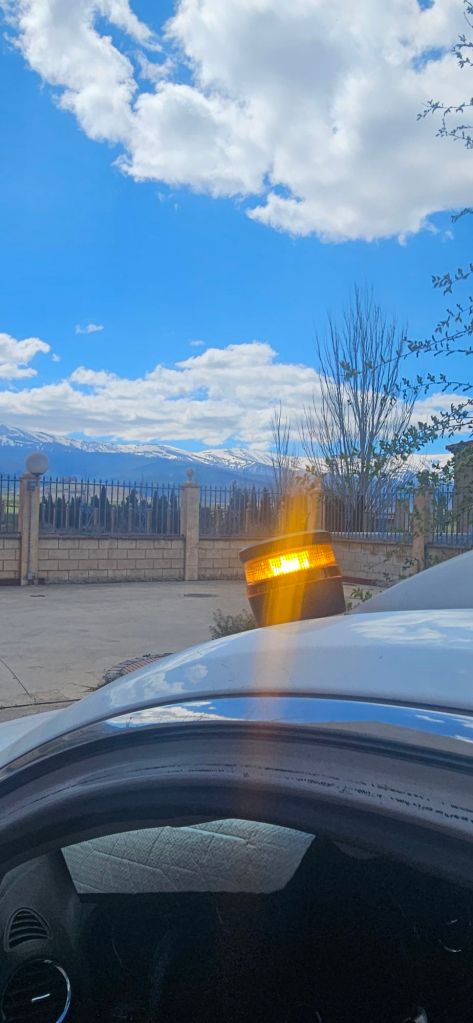 Al regreso, en el puerto de la Mora,  el embrague empezó a dar síntomas de agotamiento.  Quedaban 50 kms. hasta el destino y el motor aguantó en una marcha larga, sin cambios. Una conducción precisa, sin riesgos, sin guiños a la galería, nos permitió seguir hasta el área de servicio de La Calahorra, pero sin llegar al destino. Todo podría haber sido mucho peor, como haber quedado varados en la carretera. No hizo falta usar la baliza V16, que sí llevaba.