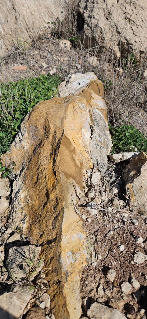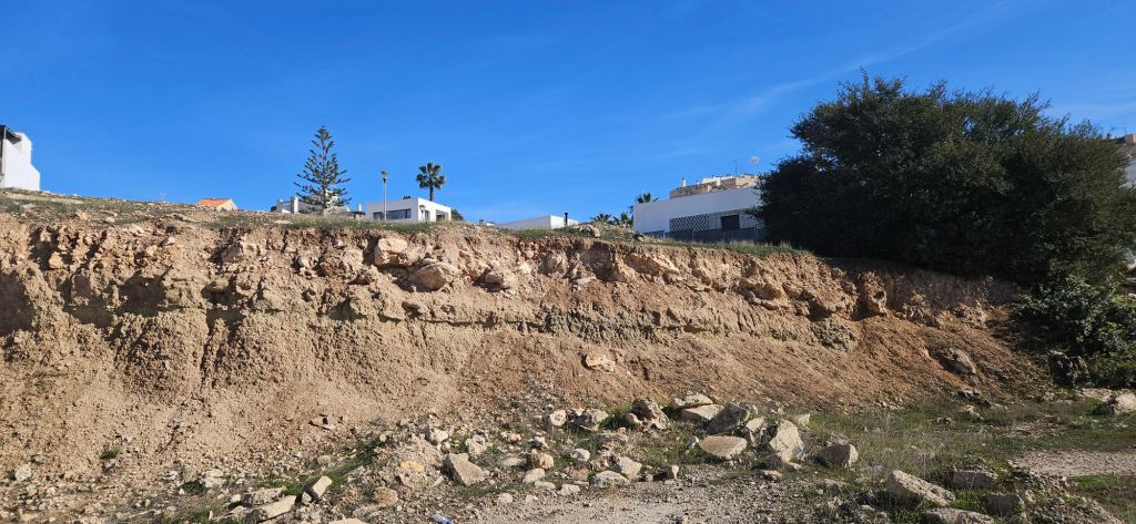 Lo que pudo llamarle la atención, y que no pertenece al terreno, son los grandes bloques de piedra perfectamente alineados y cortados, en la sección superior derecha de la falla, algunos ya caídos sobre el nivel inferior. La alineación y el corte, totalmente distinguibles de la acumulación desordenada del «debris flow» (flujos de escombros en los que masas de suelo cargadas de agua y roca fragmentada fluyen por las laderas de las montañas, se canalizan hacia los canales de los arroyos, arrastran objetos en su camino y forman depósitos espesos y fangosos en los fondos de los valles)1. Esa alineación y corte pudieron orientar sus ideas hacia restos «organizados» por mano humana neolítica, que es lo que estamos buscando, y que ya detectó José Mª Tomassetti Guerra en 1992, durante su etapa de servicio militar en Melilla: «Una simple visita de reconocimiento nos sirvió para verificar la existencia de restos arqueológicos»2. En su obra La Ciudad Antigua de Rusadir, Gozalbes menciona «los restos de cabañas de la Edad del Bronce«, liquidados sin estudiar, en la construcción del grupo de viviendas de La Constitución. Esto nos sitúa en al menos 3 milenios AC., pero buscamos la presencia neolítica en la comarca de Melilla, unos mil años antes, en el IV milenio AC, de que existen materiales y abundantes objetos, en modos análogos a los encontrados en el monte Gurugú, o incluso en las Islas Chafarinas.