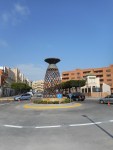 Si no fuera porque esta absurda obra de la calle Carlos Ramírez de Arellano se ha llevado pro delante un millón de euros, diríamos que se ha hecho un ridículo urbanístico a la altura de los comics de Pepe Gotera y Otilio. Lo terrible es que hablamos de la realidad y no de viñetas. Todo está tan perféctamente colocado, que impide hasta el paso de las bicicletas. La única que hemos visto circular en este desierto paraje, lo hacía por la zona de la antigua acera, la que debería ser utilizada por los peatones. La zona central no tiene sombra, así que cualquier planta que coloquen allí se achicharrará sin remedio. Las farolas en el centro de la calle son relojes de Sol perfectos.