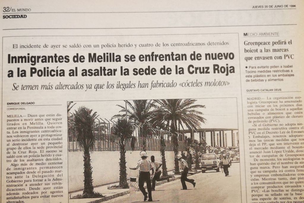 Los inmigrantes centroafricanos o subsaharianos empezaron a llegar a nuestra ciudad a partir de 1996, cuando la imagen de España se empezó a proyectar en el mundo entero, tras las Olimpiadas de Barcelona y la Expo Universal de Sevilla en 1992. Las primeras comunidades de centroafricanos ocuparon el patio trasero de la Cruz Roja, y la instalaciones de la antigua Escuela de Enfermería y posteriormente el resto del edificio. Un gigantesca revuelta en 1996, con incendios y varios días de conflicto urbano, obligó a trasladarlos de lugar, ocupando el parte del campo de fútbol, y las instalaciones de la Granja Agrícola. Y así sucedió todo, un año tras otro, porque entonces, ese otro lado estaba aquí dentro. En 1996 empezaron a llegar a Melilla los primeros funcionarios de Naciones Unidas, y los acompañábamos a todos esos lugares referenciados, porque casi nadie más se atrevía a entrar allí dentro. Casi ninguno de los que están ahora, estaban entonces, cuando ese otro lado y el nuestro, eran el mismo. Escribir en aquel tiempo sobre el otro lado, no traía aparejada ninguna buena cuenta. Todo lo contrario. Por eso la gente, salvo muy pocas excepciones, no solía mirar hacia el interior del edifico de Cruz Roja, ni acudía a la Granja Agrícola y no sabrá nunca lo que era The Bini Kingdom (El Reino de Bini, el nigeriano) y sus menús a 2€, con proyección de películas en una furgoneta vieja, por la noche.