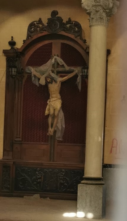 Estas imágenes arrumbadas y que ya no reciben culto, son el testimonio mudo de un mundo que ya no es. No conectan con nosotros, o nosotros con ellas. Son, en el mejor de los casos, objeto de atención cultural o turística. Tampoco se merecen acabar así, ésta al menos, que debería ser alojada en el «Museo de Arte Sacro», para poder ser contemplada. Hay otras en la vacía nave, pero son imágenes de serie, de lo talleres de Olot.