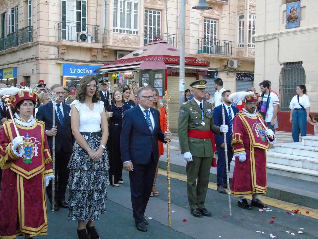 Se trataba de una procesión no oficial, por tanto no había autoridades de ninguna clase, ni representación de Instituciones, ni tampoco del clero de la ciudad, que habitualmente acompaña en su totalidad a la imagen de la Patrona. Eso no lo imaginamos para ninguna patrona de ninguna capital española. Al no ser una procesión oficial, tampoco hay protocolo de colocación de autoridades. Quien va a ella lo hace a título personal, y así entendemos la presencia del diputado Díaz de Otazu y del senador Juan José Imbroda. Asistieron también los diputados locales Marín y Quevedo, en representación propia. ¿Se puede sacar a una Patrona así? El obispado de Málaga, que es quien lo ha autorizado podría explicarlo, pero no lo hará públicamente, aunque tomará sus notas y enviará sus comunicaciones y advertencias.